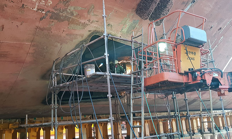 선박의 손상 부위의 DAMAGE FOUNDING 검사를 통해 각 프로젝트마다 요구되든 선급자재를 통한 수리작업을 진행하며 우수한 수리팀과 전문가를 구성하여 효율적이며 신속한 수리를 진행하고 있습니다.